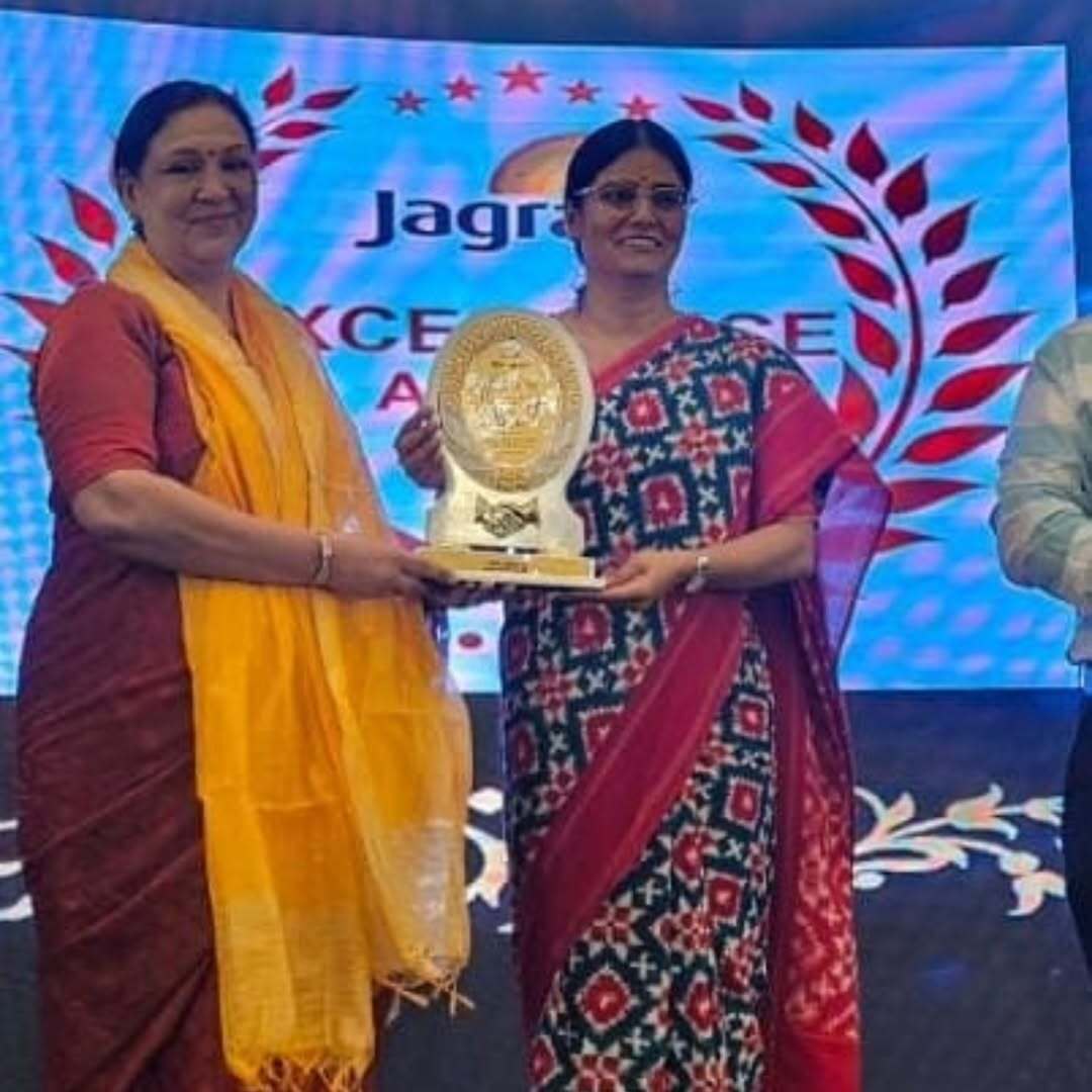 Woodward Principal and Director Shalini Mehra and Puneet Mehra being felicitated by Minister of family welfare Mrs Anupriya Patel with an excellence award and been formally recognized and honored for outstanding achievements performance, or contributions in the field of education.