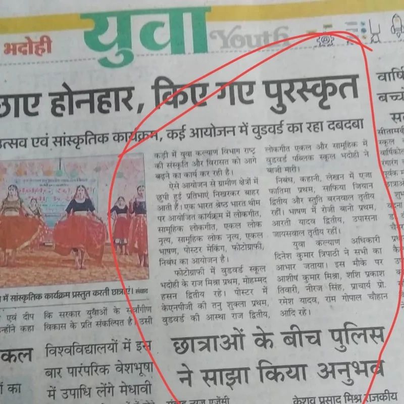 1st in District level Yuva Utsav. Woodward wins nearly all the medals at the District Yuva Utsav