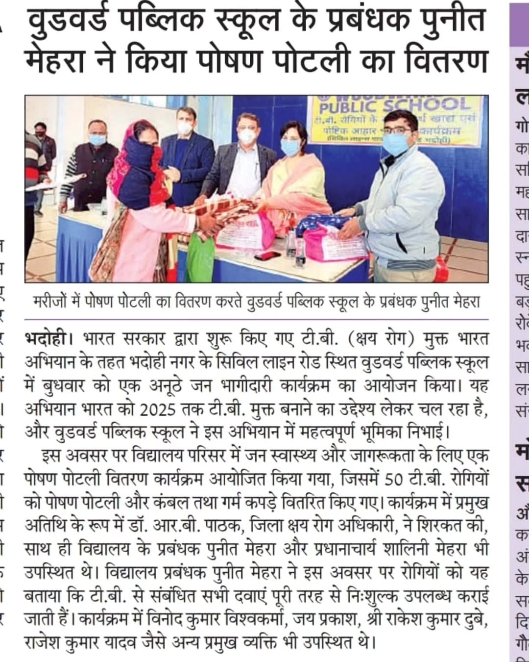 WOODWARD HAS ADOPTED tuberculosis (TB) patients as part of the Ni-kshay Mitra program.