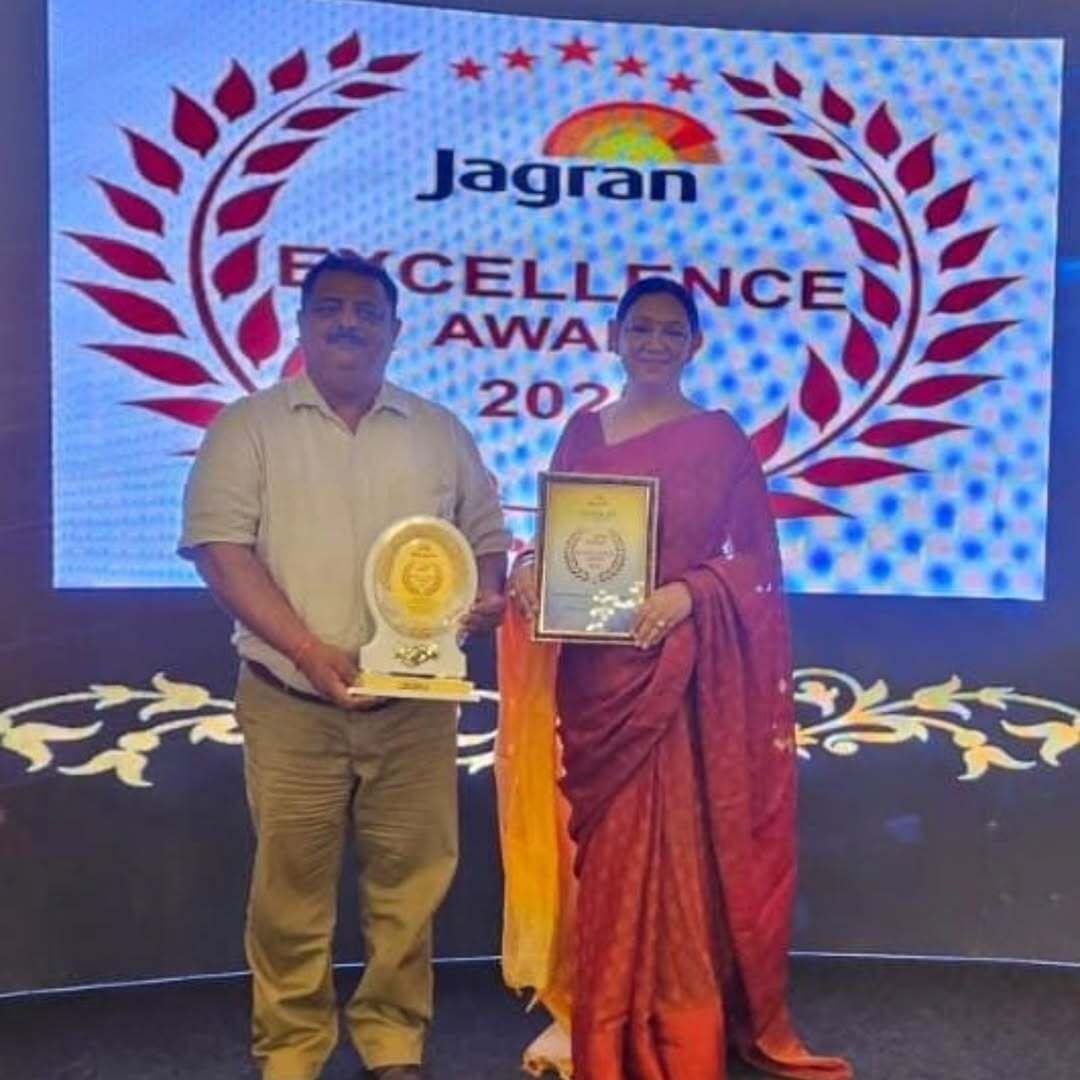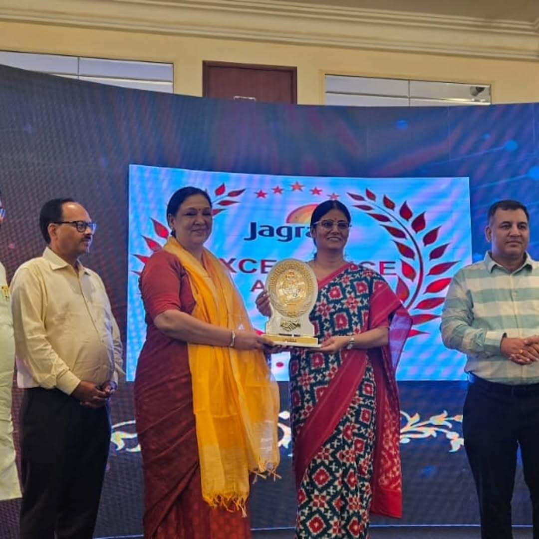 Woodward Principal and Director Shalini Mehra and Puneet Mehra being felicitated by Minister of family welfare Mrs Anupriya Patel with an excellence award and been formally recognized and honored for outstanding achievements performance, or contributions in the field of education.